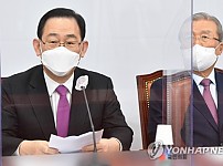 ▲비상대책위원회의 참석하는 김종인과 주호영국민의힘은 11일 한국토지주택공사(LH) 직원들의 투기 의혹에 대해 문재인 대통령의 책임론을 일제히 제기했다.주호영 원내대표는 비대위 회의…