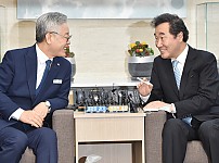 ▲ 이재명 지사 만난 이낙연 의원이낙연 더불어민주당 당 대표 후보와 이재명 경기지사가 지난달 30일 오전 경기도청에서 만나 간담회를 갖고 있다.(끝)민소정 기자 / 더인사이드뉴스