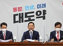 주호영 "끊임없이 당에 편파 방송…특정 노조·野 입맞춰 방송 장악 주장" 野 박진 해임 건의안에 "다수당 힘자랑·횡포…발목잡기 넘은 협박"▲발언하는 주호영 원내대표국민의힘은 윤석열…