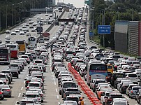 ▲ 고속도로, 상하행선 정체 시작 이번 추석 고속도로 통행량이 감소할 것으로 예상되는 가운데 부산경찰청이 연휴 전후 하루 평균 400여 명을 집중 배치해 단계별 특별 교통관리에 …