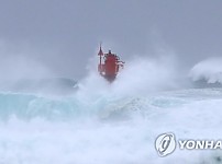 ▲등대 집어삼키는 파도 중앙재난안전대책본부(중대본)는 제9호 태풍 '마이삭'이 제주도에 가까워짐에 따라 2일 오전 9시를 기해 태풍 위기경보를 최고 단계인 '심각'으로 격상하고 중…
