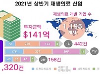 한국바이오협회, 2021년 상반기 글로벌 재생의료 산업 보고서 갈무리올해 상반기에만 전년도 전체 199억 달러의 70%에 달하는 141억 달러의 자금이 글로벌 재생의료(첨단바이오의…