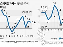 코로나·저유가·복지정책 영향…근원물가도 IMF 이후 최저 수준 상승12월 물가 0.5%↑…월간 상승률도 3개월 연속 0%대▲[그래픽] 소비자물가지수 등락률 추이 지난해에 이어 올해…