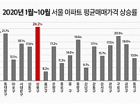 1~10월에 25% 상승…강북구·성북구가 2·3위▲올해 1∼10월 서울아파트 구별 평균 매매가 상승률 올해 들어 서울에서 아파트 평균 매매가 상승률이 가장 높은 지역은 노원구로 나…