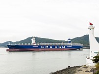 현대삼호중, 中제치고 세계 최초 LNG추진 초대형 컨선 인도 성공