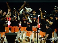 ▲서부 콘퍼런스 우승 트로피 든 피닉스 선수들미국프로농구(NBA) 피닉스 선스가 서부 콘퍼런스 결승에서 로스앤젤레스 클리퍼스를 제압하고 28년 만에 챔피언결정전에 진출했다. 피닉스…