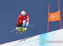 ▲옌칭 국립알파인센터에서 활강 경기 중인 스위스 슈테판 로겐틴2022 베이징 동계올림픽 개막 나흘째인 7일에도 참가 선수들의 음식 불만이 이어졌다. 추운 날씨에 설원에서 기량을 겨…